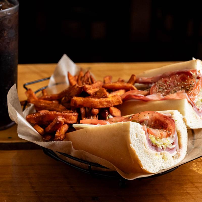 All Subs/ Burgers/ Dillas & Tacos Served with Choice of Fries or Tater Tots (Sweet Potato Fries, Corn, Pickled Cucumbers & Onions, Coleslaw, Add $1.75) | (Loaded Fries, Loaded Tots, Brussel Sprouts or Onion Rings (5 Each) Add $3.00)